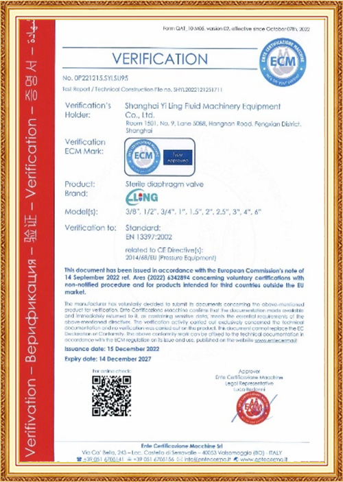 گواهی بهداشت شیر دیافراگمی 3A